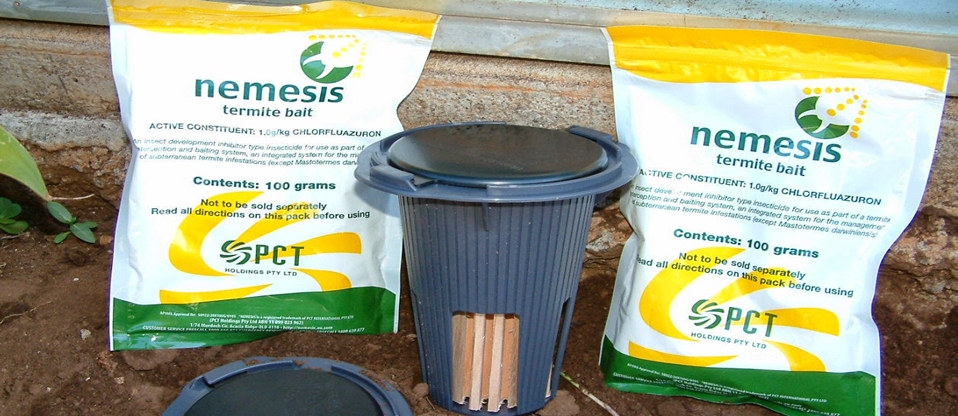 ระบบเหยื่อล่อเนเมซิส เป็นระบบที่ดึงดูดปลวกเป็นพิเศษ โดยจะใช้เหยื่อไม้เป็นอาหารจะล่อให้ปลวกเข้ามากินที่สถานีในบ้านของคุณ กล่าวได้ว่าในกรณีที่ปลวกงานที่อาศัยอยู่ในบริเวณบ้านของคุณ เหยื่อล่อสามารถนำมาใช้ควบคู่กับ สถานีเนเมซิสแบบบนดิน (Above – ground station) ที่ได้รับการออกแบบมาเป็นพิเศษโดยสามารถติดตั้งลงบนแหล่งที่ปลวกหาอาหาร จากนั้นปลวกงานจะเข้ามากินเหยื่อ และจะนำเหยื่อกลับไปเป็นอาหารให้ปลวกตัวอื่นกินเช่น ปลวกทหาร ราชินีปลวก และปลวกงานตัวอื่นๆ โดยที่พวกปลวกจะไม่สามารถรู้ได้เลยว่า เหยื่อนั้นมีผลต่อการเจริญเติบโต